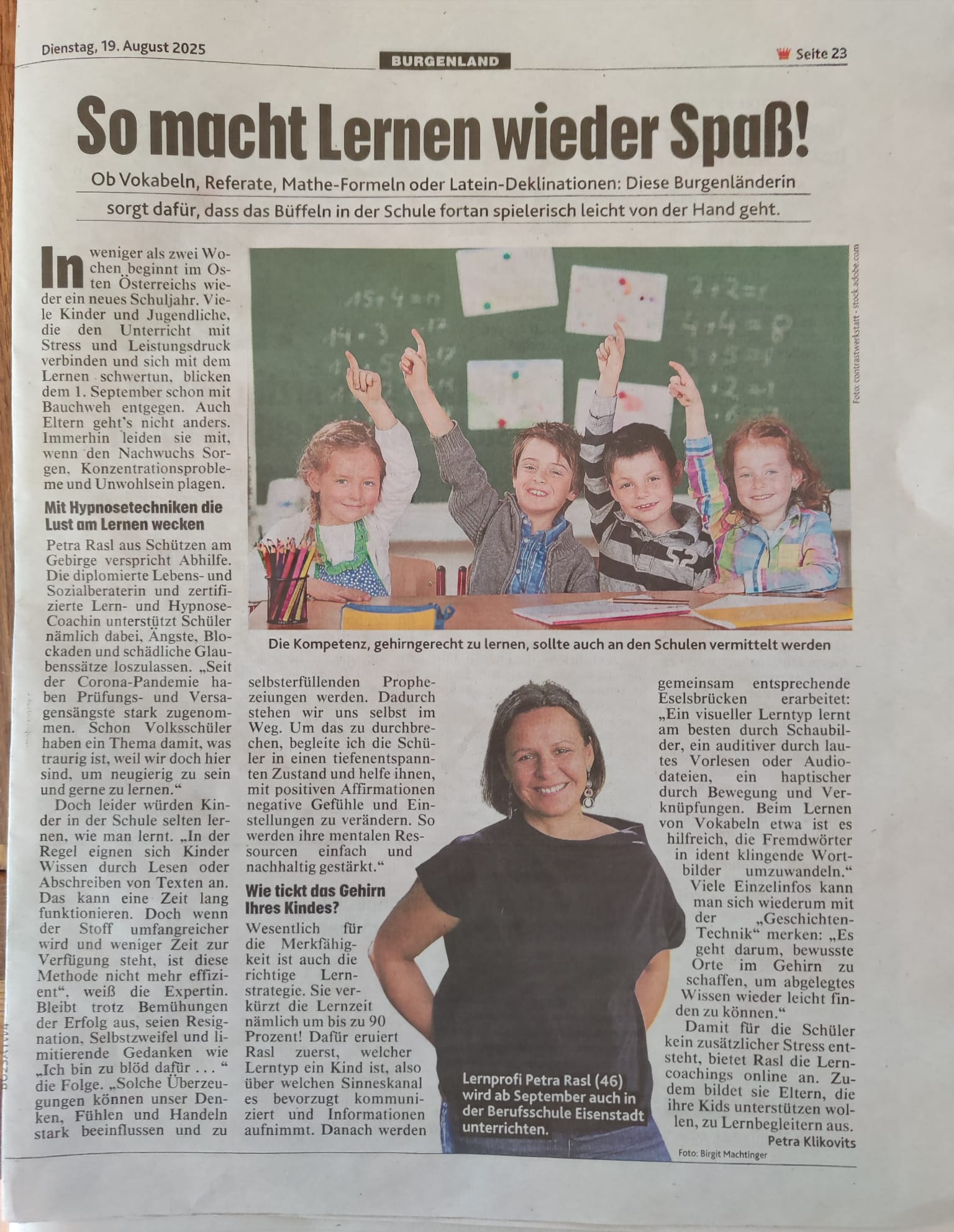 Unter dem Titel „So macht Lernen wieder Spaß!“ erschien am 19. August 2025 ein Artikel, der mir besonders am Herzen liegt – weil er zeigt, dass Lernen nicht mühsam oder belastend sein muss, sondern wieder leicht und freudvoll werden darf. 🌿
